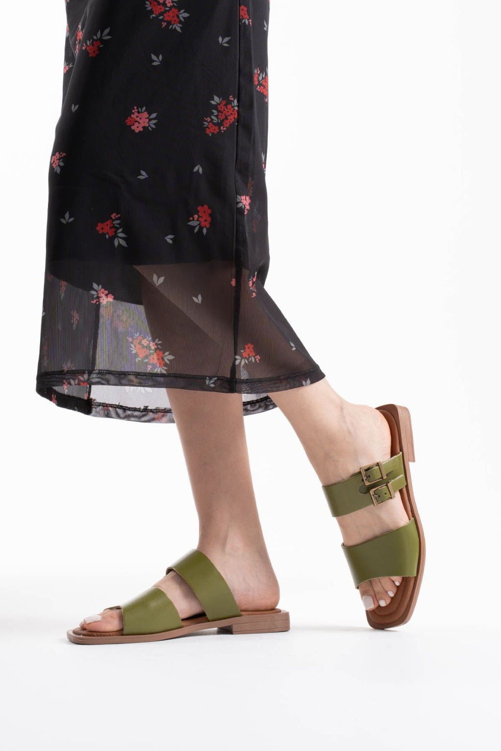 Loose Haki Yeşili Hakiki Deri Terlik