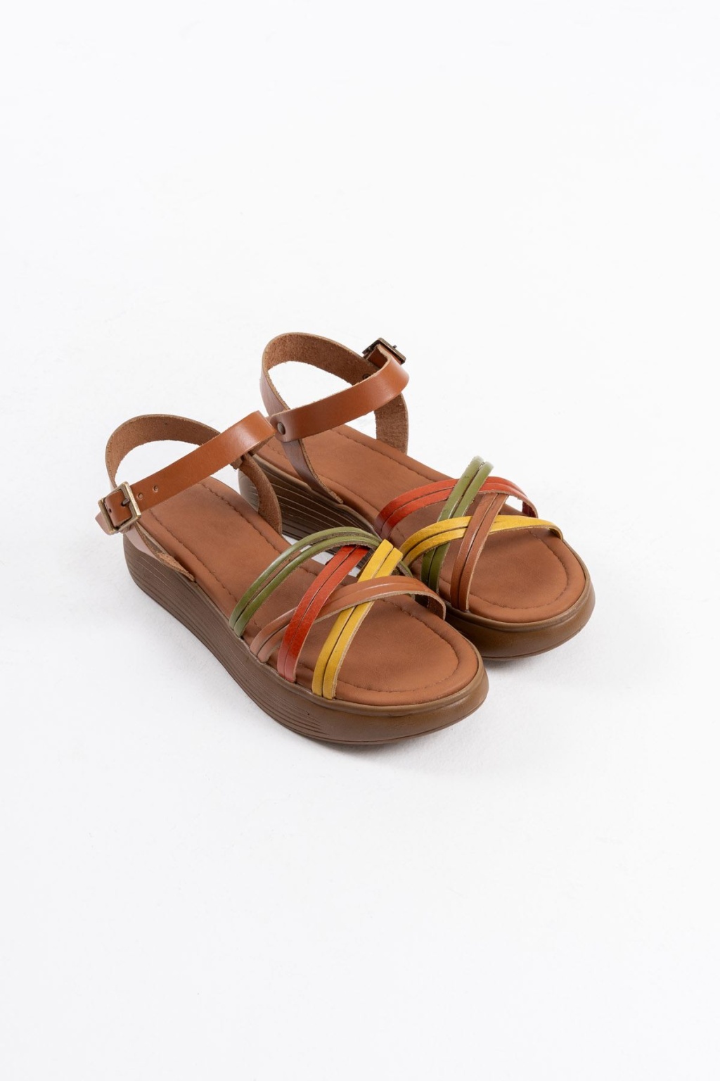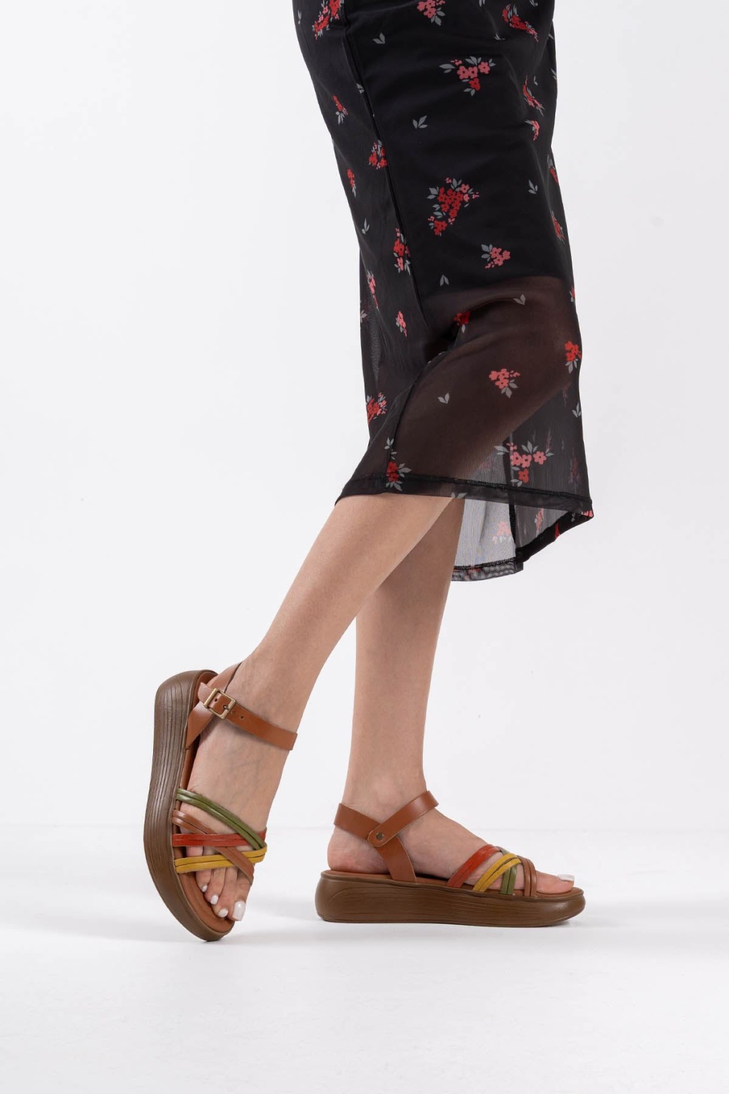 Herry Acı Kahve Altın Detaylı Hakiki Deri Sandalet