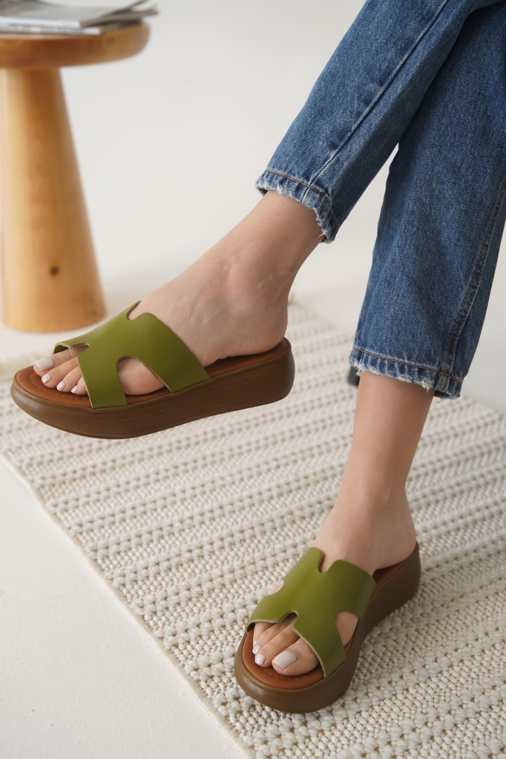 Fergei Haki Yeşili Hakiki Deri Terlik