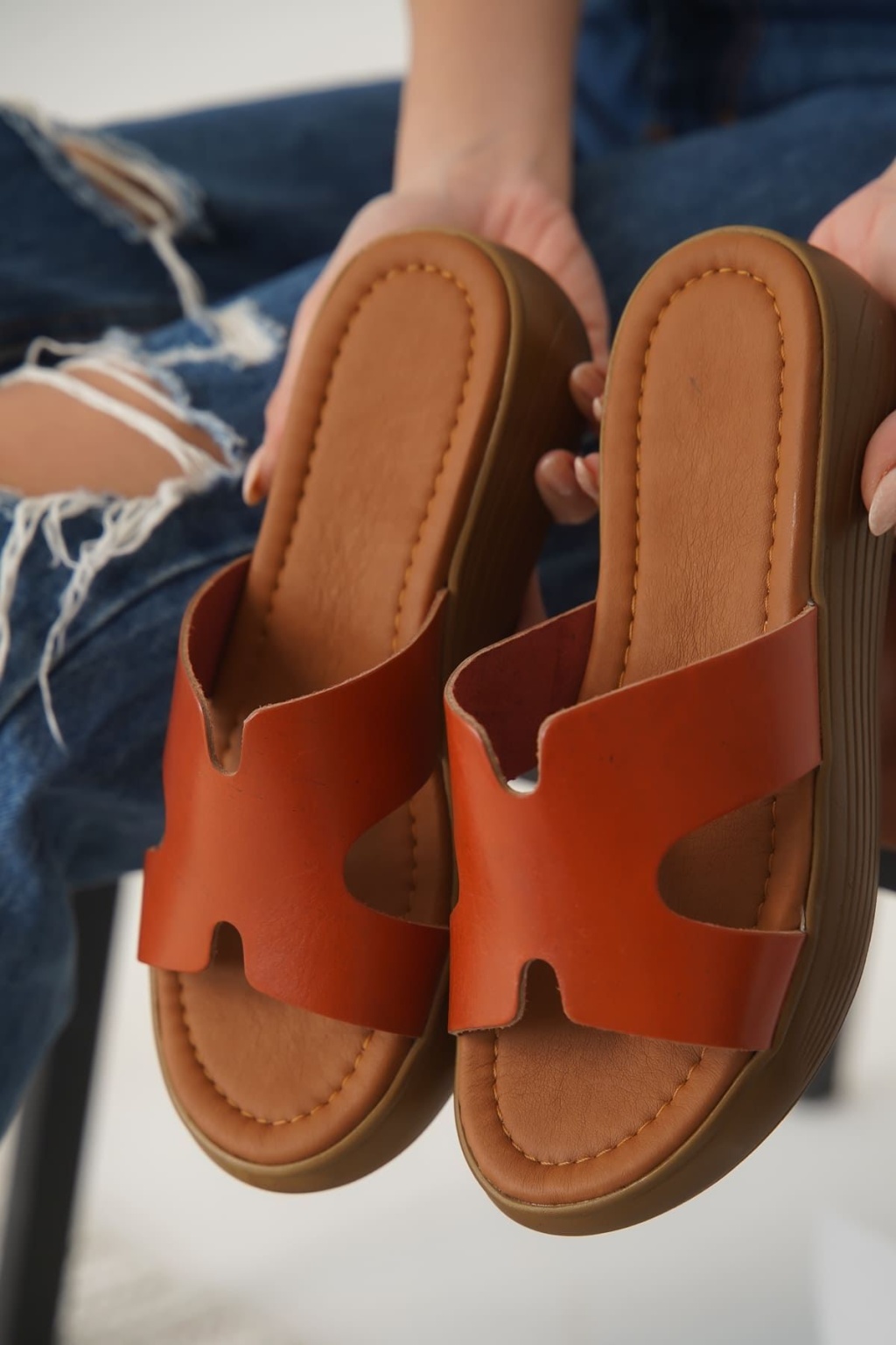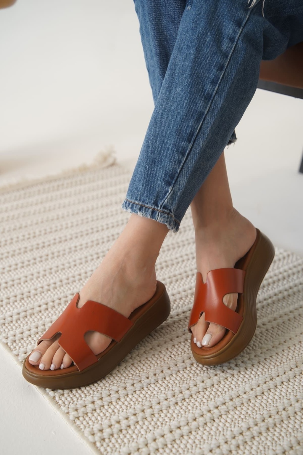 Kares Kiremit Hakiki Deri Terlik