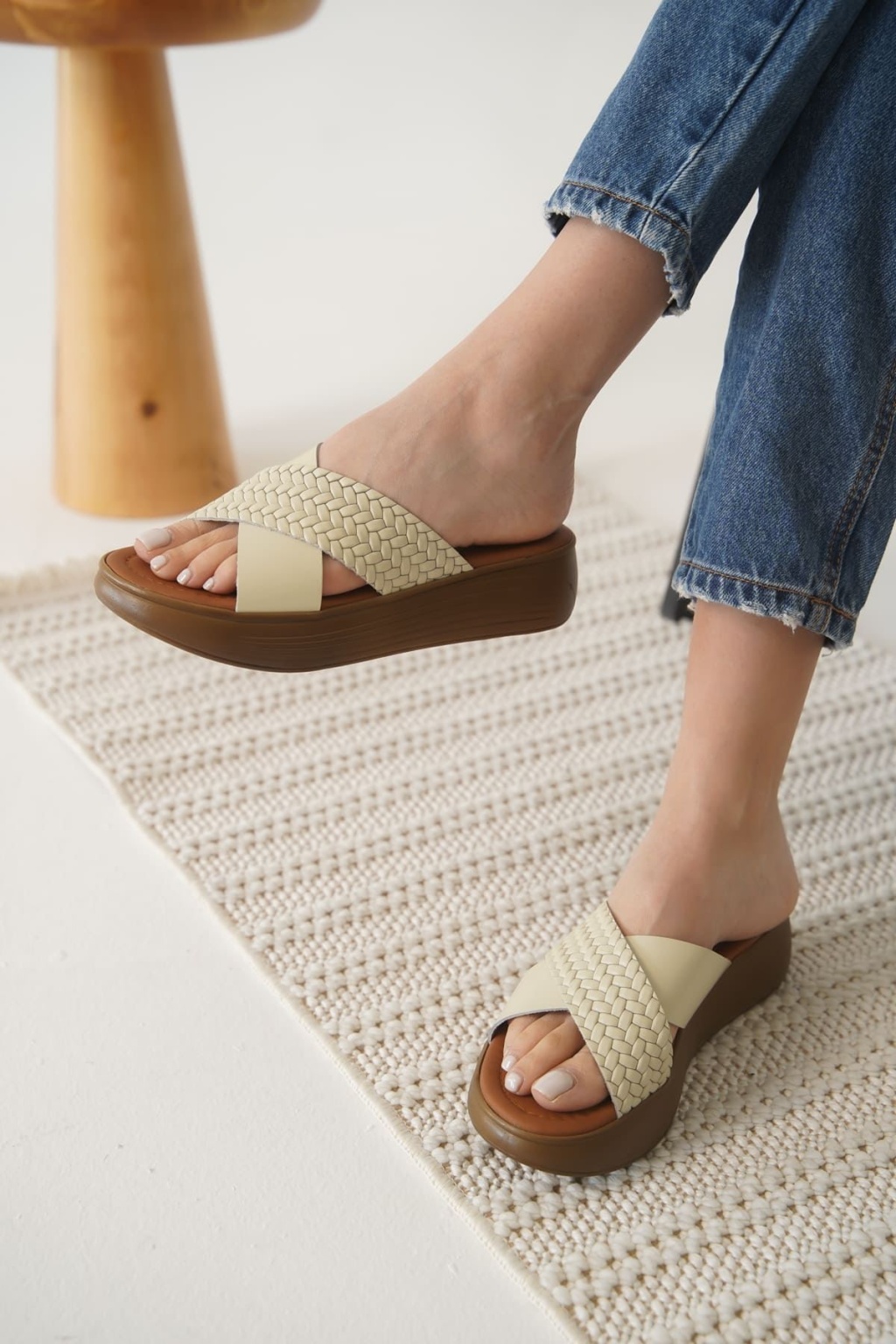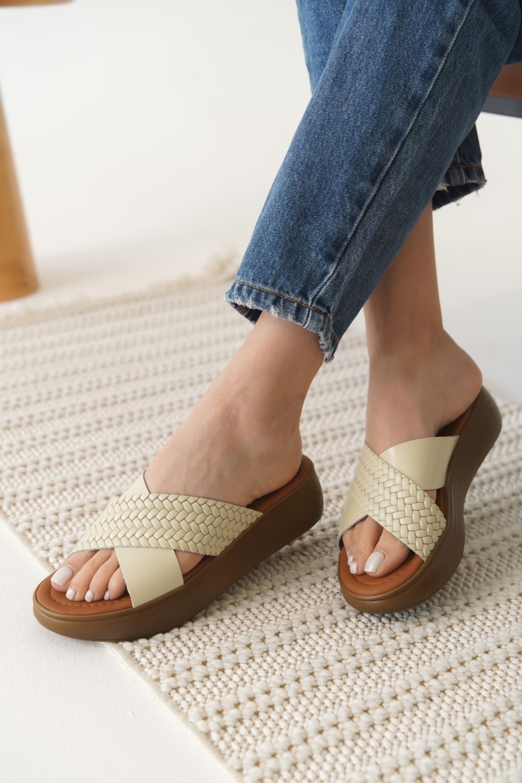 Fergei Haki Yeşili Hakiki Deri Terlik