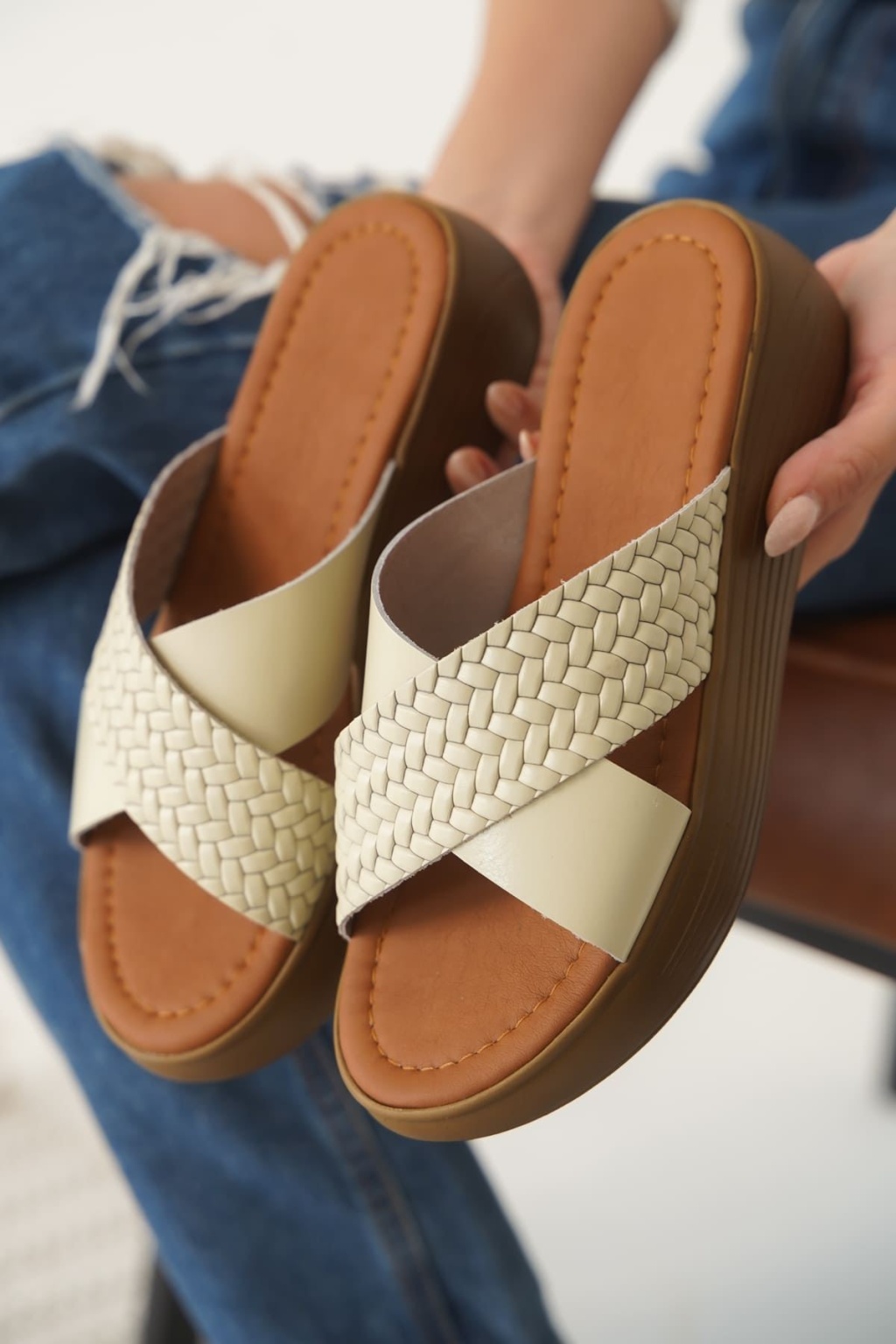 Marlen Haki Yeşili Hakiki Deri Terlik