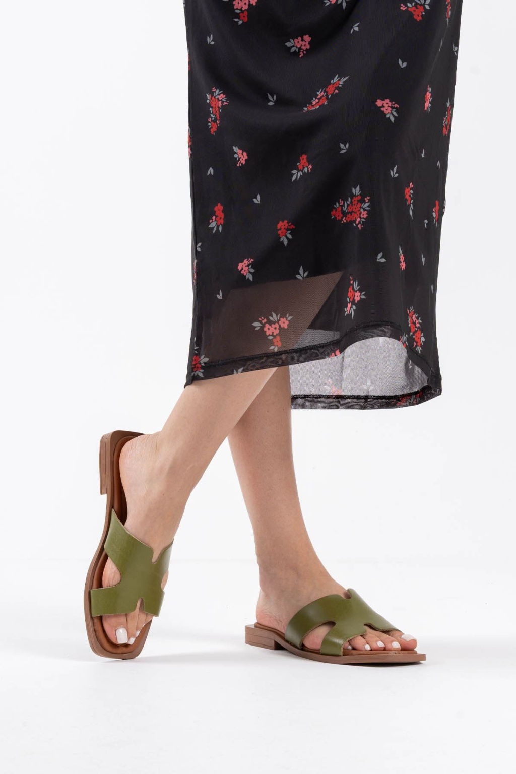 Loose Haki Yeşili Hakiki Deri Terlik