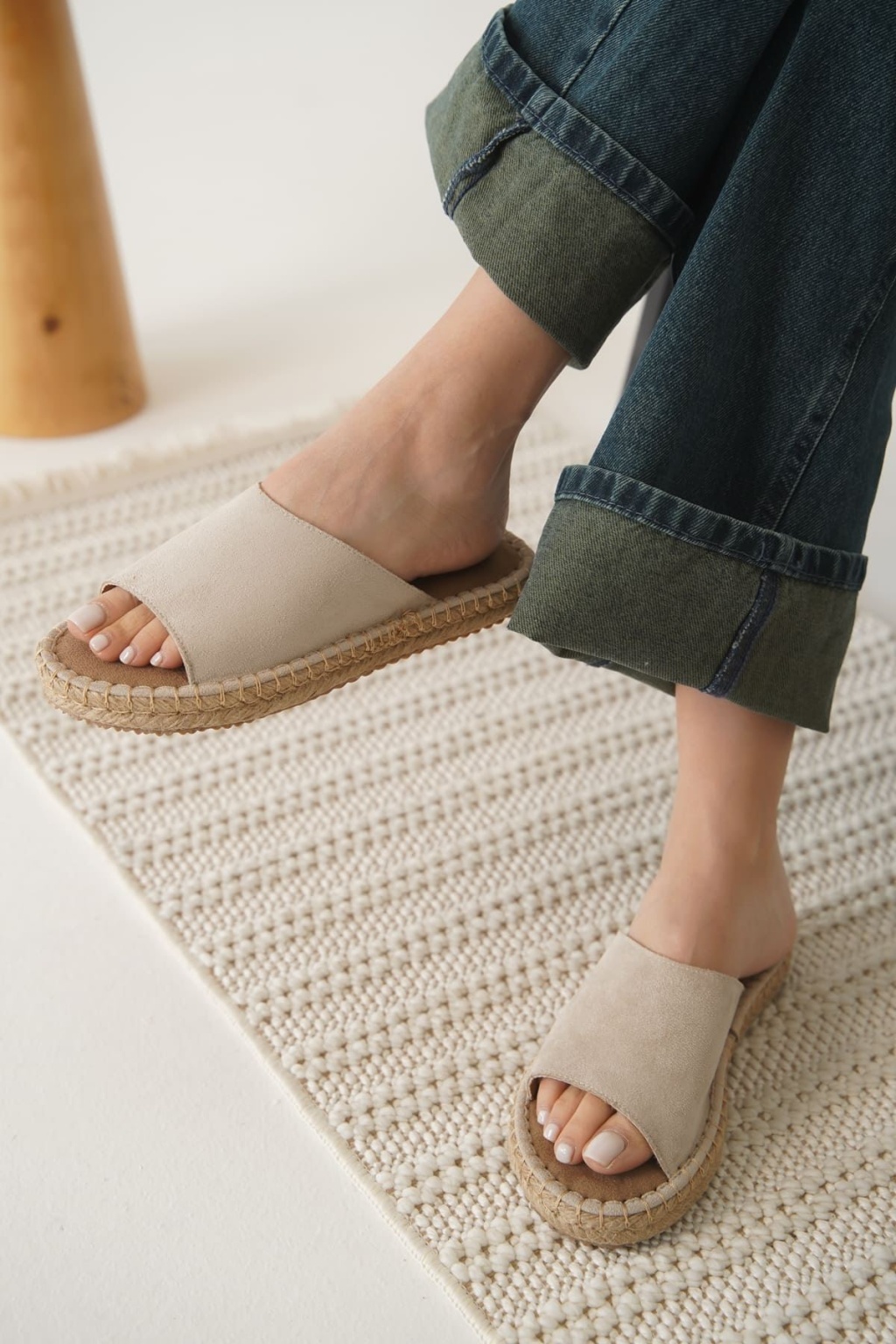 Marlen Haki Yeşili Hakiki Deri Terlik
