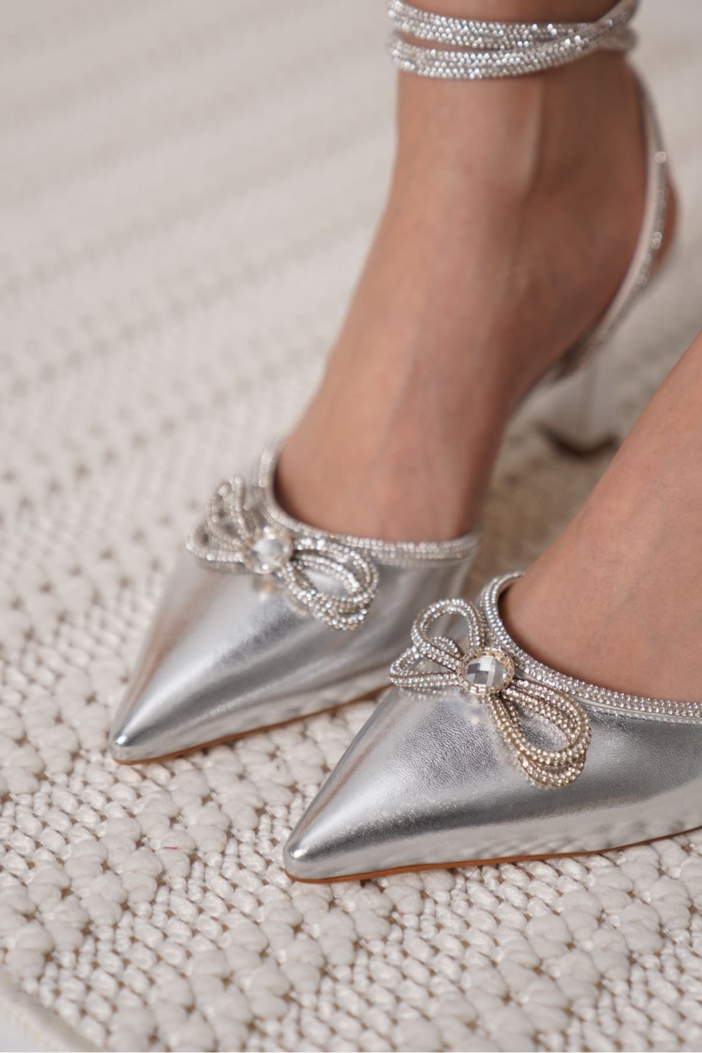 İrina Kadın Gümüş Taşlı Topuklu Ayakkabı