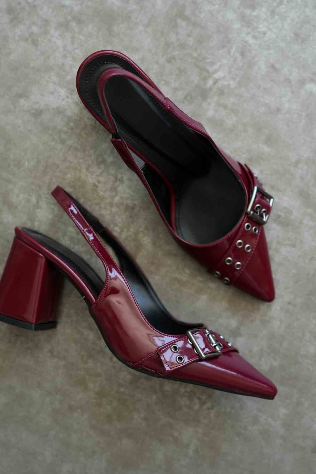 Doren Bordo Rugan Kadın Topuklu Ayakkabı