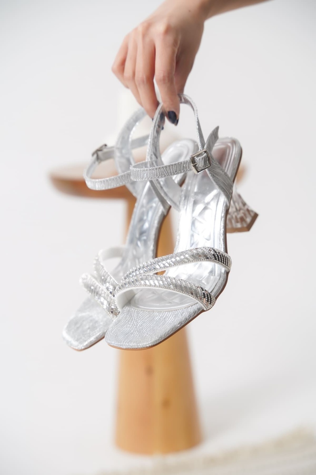 Kendy Gümüş Taşlı Kadın Topuklu Sandalet