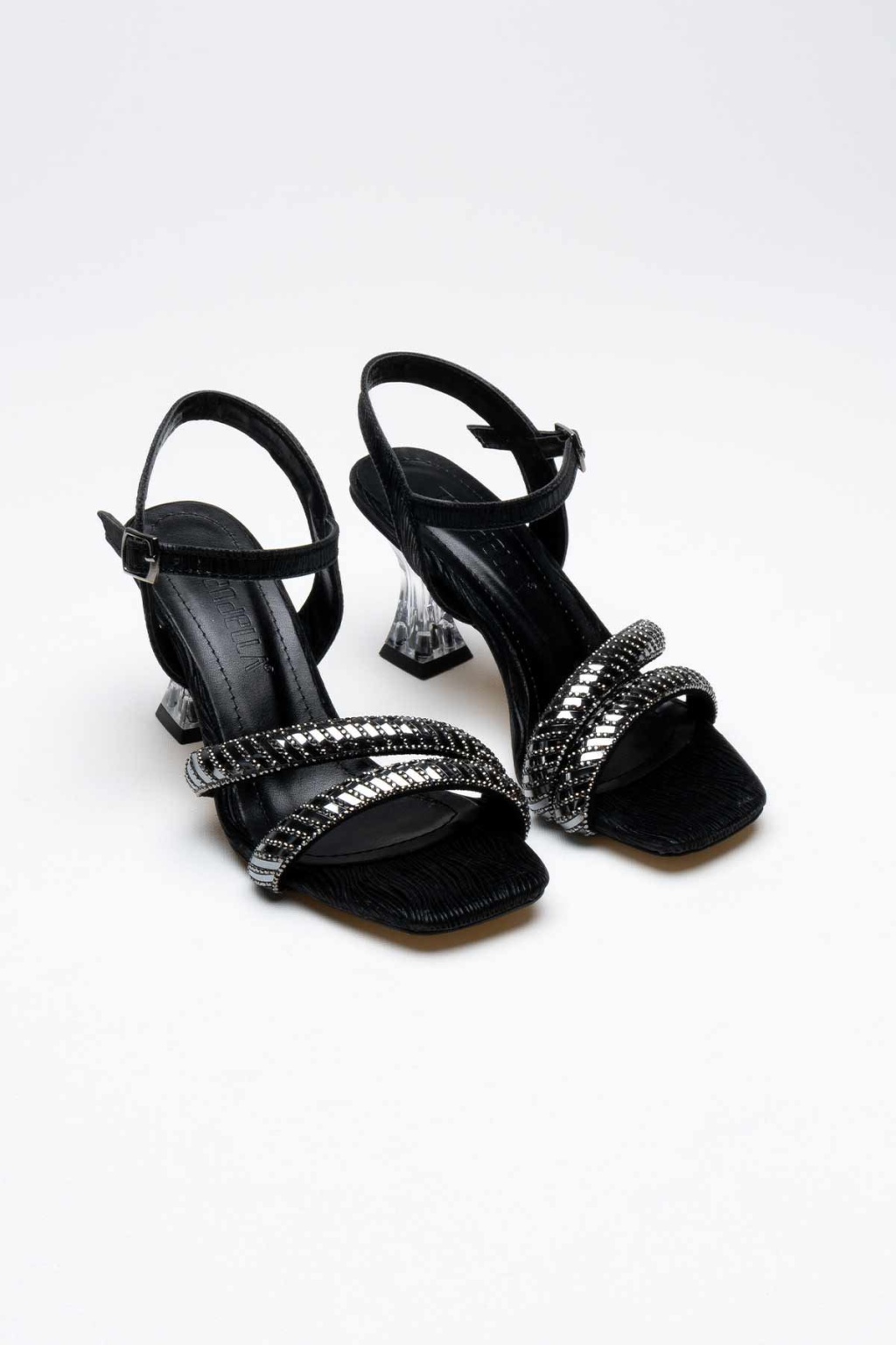 Kendy Siyah Taşlı Kadın Topuklu Sandalet