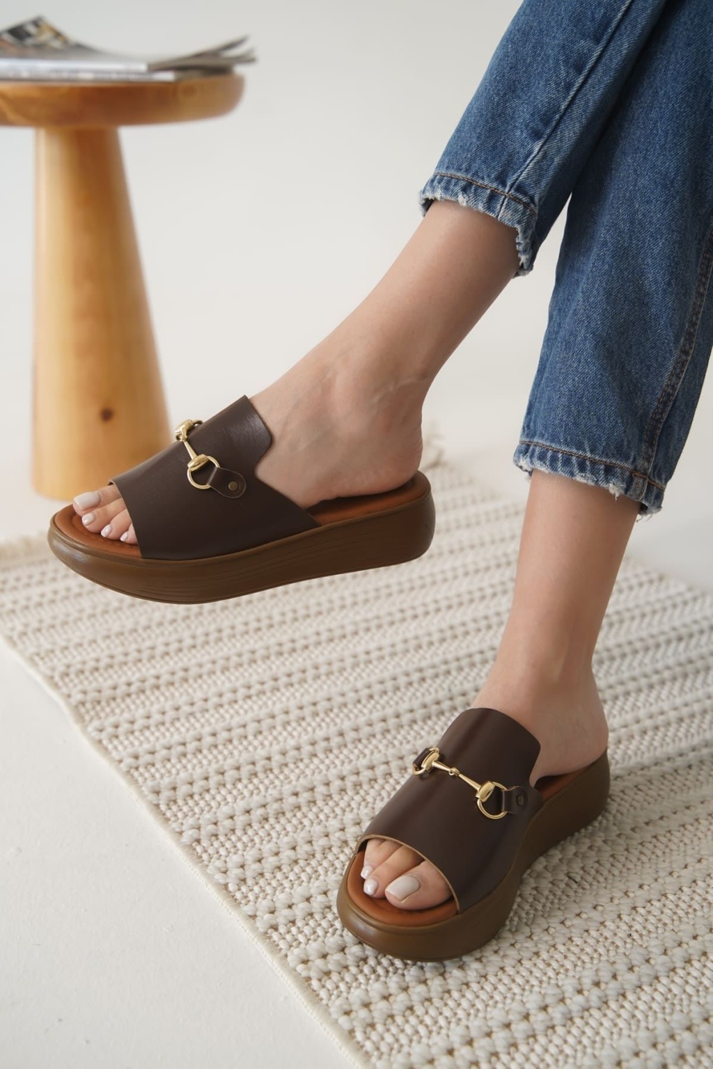 Nelly Acı Kahve Hakiki Deri Terlik