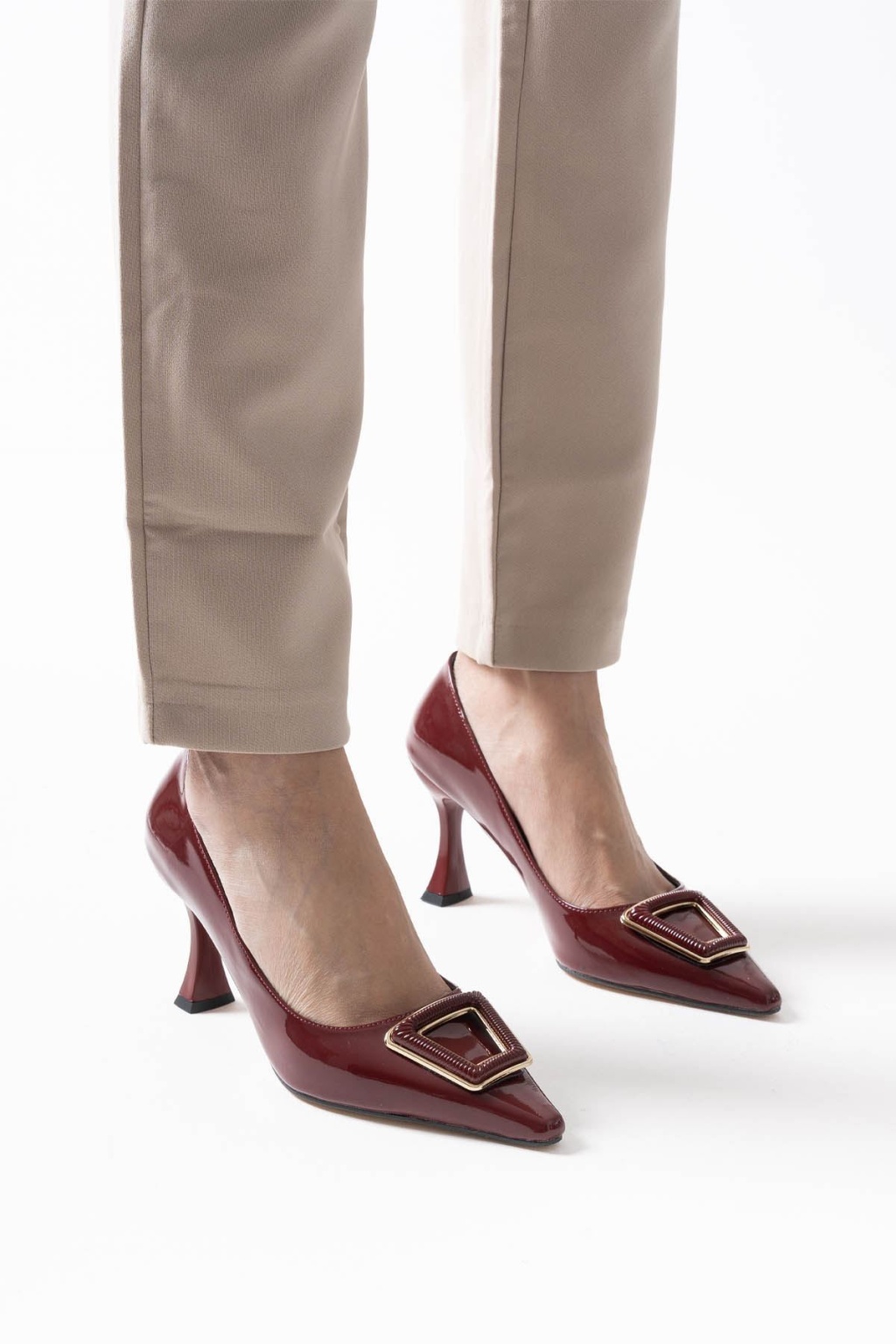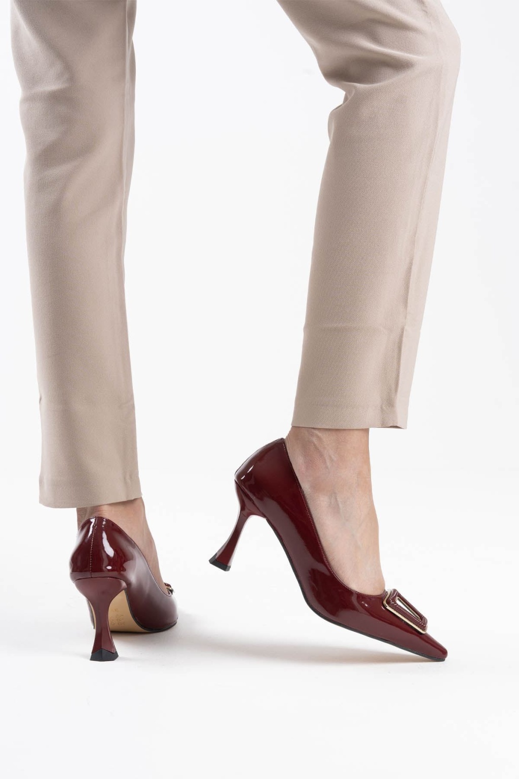 Doren Bordo Rugan Kadın Topuklu Ayakkabı