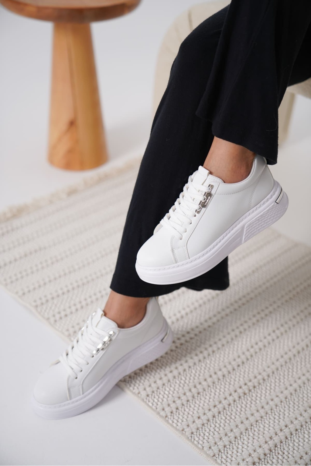 Nova Kadın Gümüş Detaylı Beyaz Sneaker