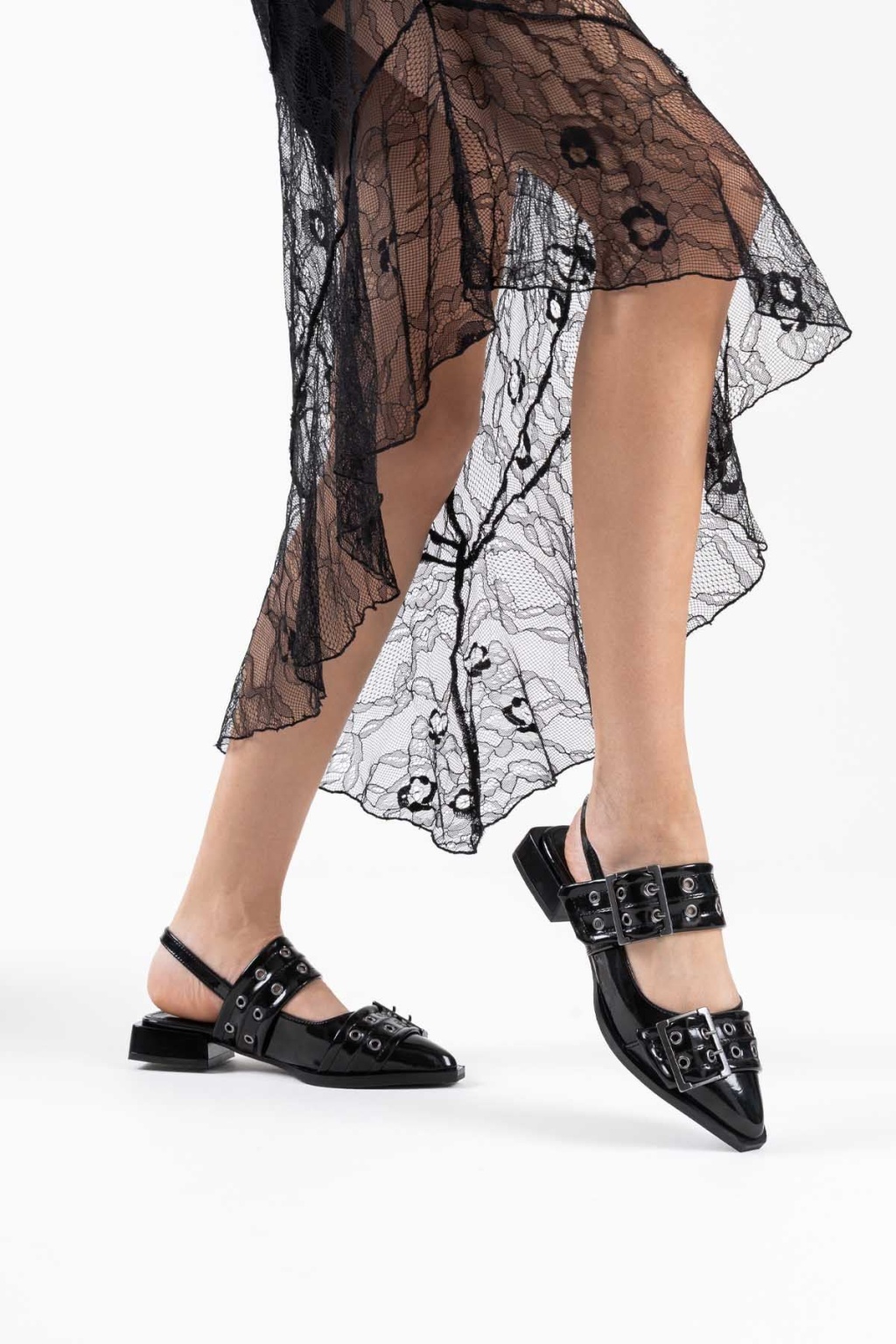 Ophelia Kadın Siyah Rugan Topuklu Ayakkabı