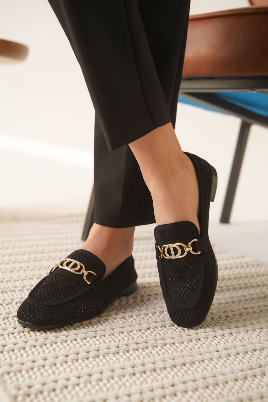 Caro Rugan Siyah Gold Tokalı Kadın Loafer