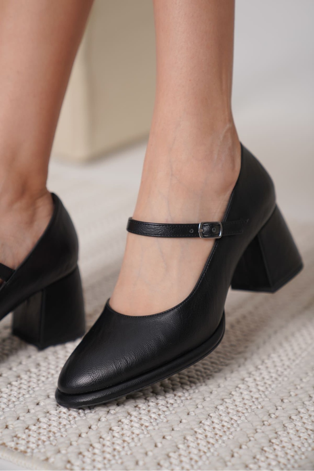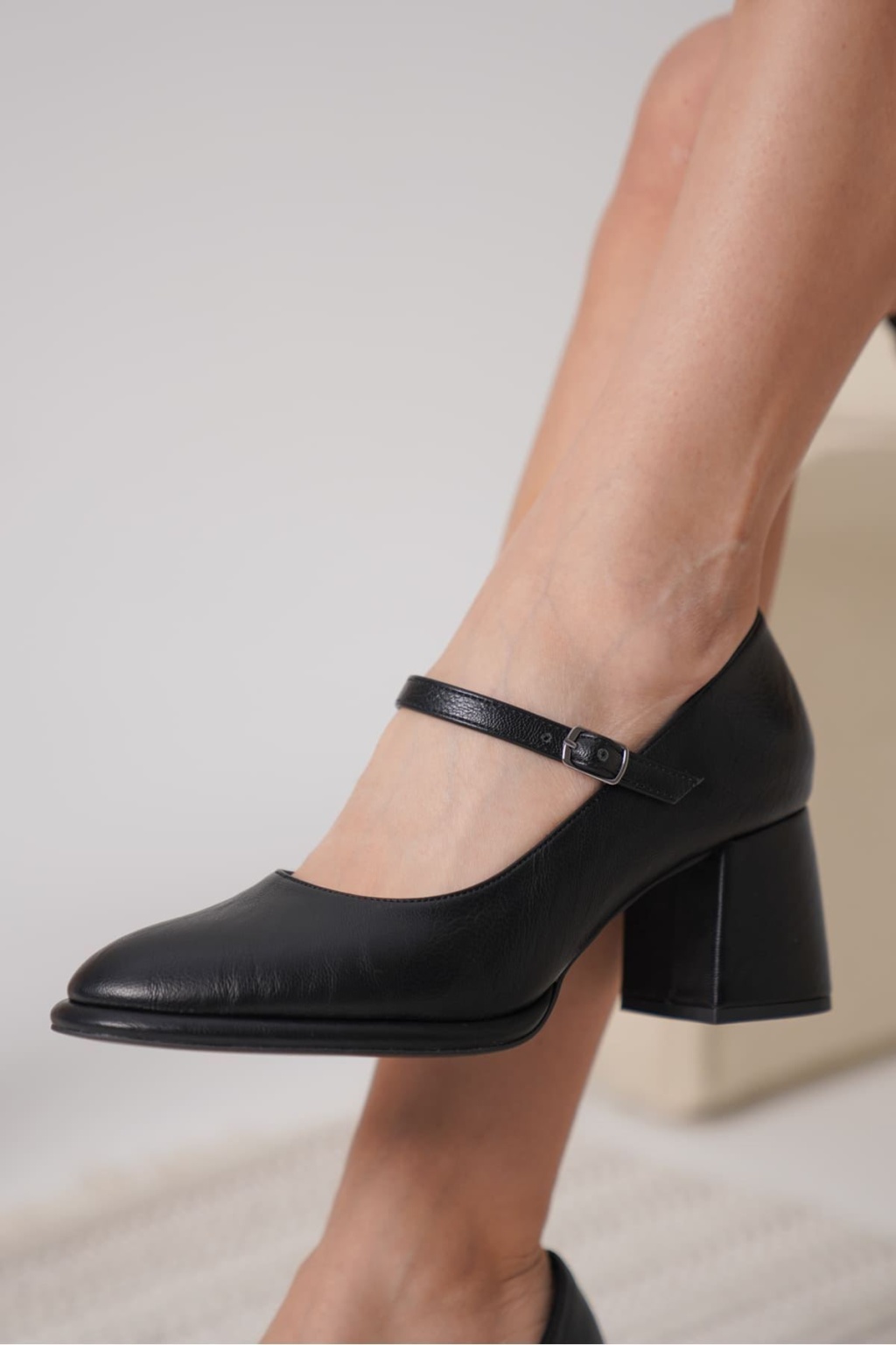 Slay Siyah Cilt Kadın Topuklu Ayakkabı
