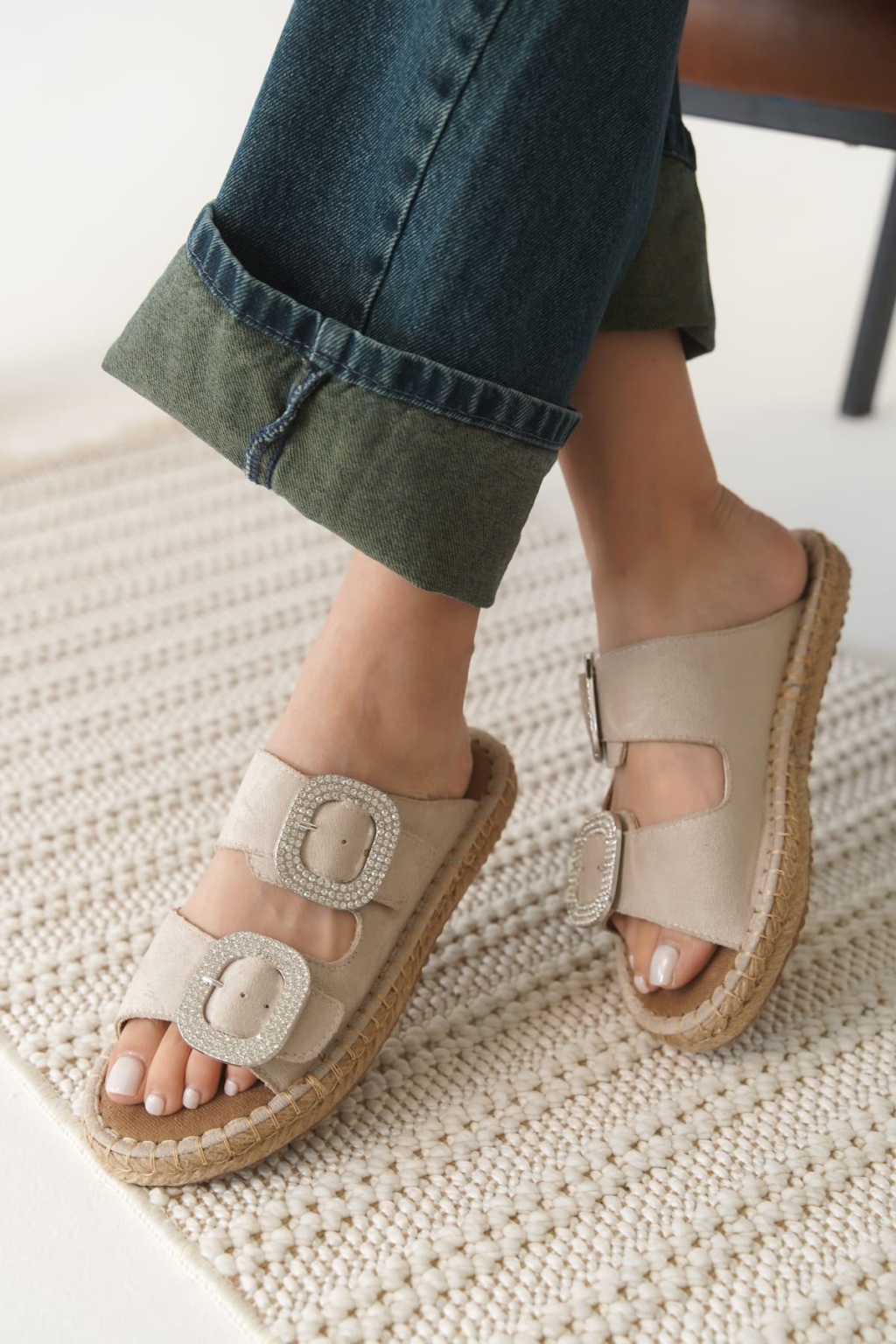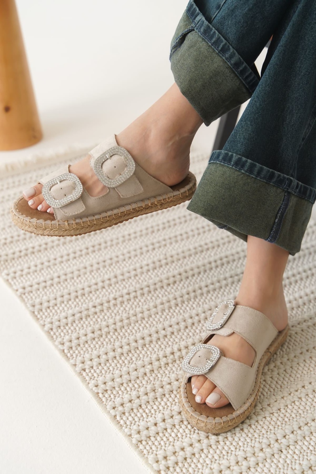 Tyna Süet Bej Taşlı Kadın Terlik